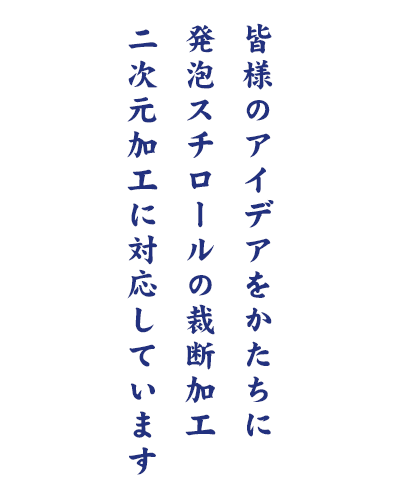 有限会社 山川商店では、発泡スチロールの裁断加工・二次元加工に対応、ニーズに合わせて発泡スチロールの加工を行います。梱包材の製作など、きめ細やかにお伺いして、小ロットから大量生産まで承ります。